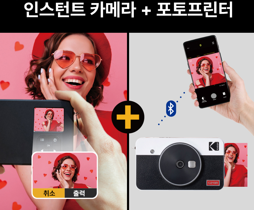 이번에 소개할 것도 KODAK의 카메라 관련 제품인데 과거 KODAK의 레트로함이 잘 살아 있는 카메라 + 포토프린터인 KODAK MINISHOT 입니다. 디지털 카메라와 프린터가 결합된 제품으로 과거 폴라로이드 카메라 느낌을 제대로 살린 것이죠. 저 위 그림에서 보다시피 스마트 폰으로 전송도 가능한 제품입니다.