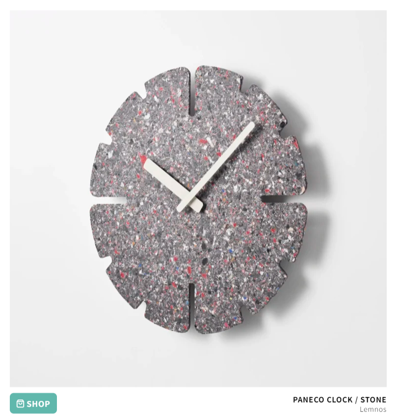 재활용품 하면 떠오르는, 환경을 생각하는 것은 좋지만 실용성이 떨어지고, 뭐니뭐니해도 이쁘지 않다라는 생각을 가질 수밖에 없는데, 여기서 선보인 RECYCLING BOARD인 PANECO의 경우 의류 뿐 아니라 다양한 섬유를 재활용하였으며, 90% 폐기 의류 섬유 함유율을 가지고 있습니다. 거기다가 다양한 입자의, 다양한 색채를 활용하고 있습니다. 그러기에 재활용품하면 생각나는, 단색의 채도가 어두운 느낌이 들지 않고 있습니다.