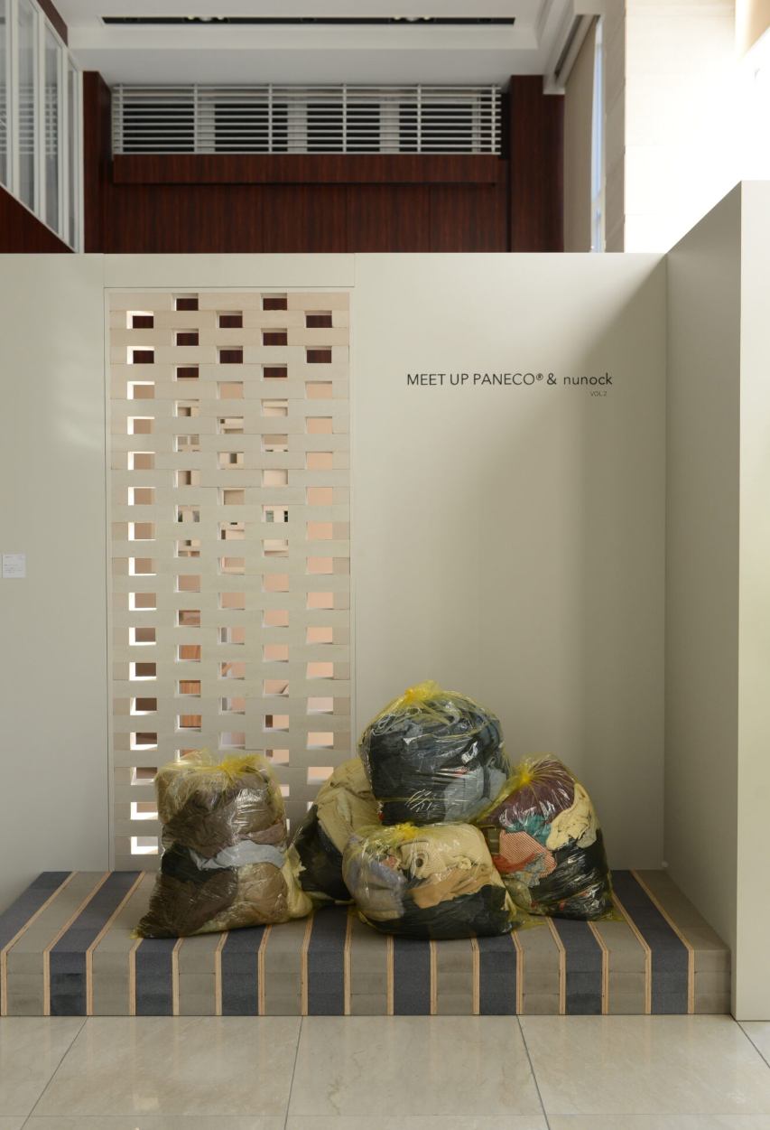 이에 완벽한 해결책은 아니지만 일본의 섬유 전문 회사인 MORIRIN에서는 버려진 섬유를 이용한 각종 벽돌과 인테리어 소품을 전시한 MEET UP PANECO & nunock vol.2 전시를 MORIRIN 도쿄 본사 1F 포레스트에서 개최하였습니다.